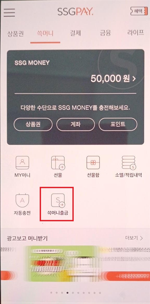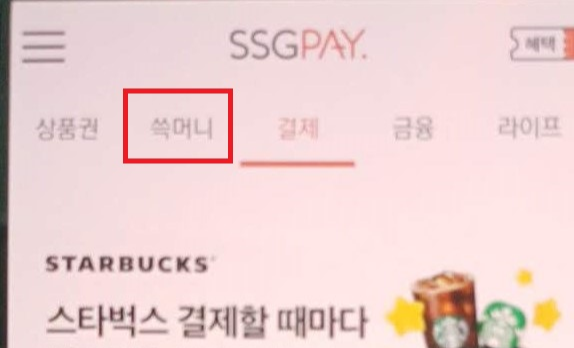 그럼 위와 같은 화면이 나오는데 여기서 'SSG MONEY(쓱머니)' 메뉴로 들어간다