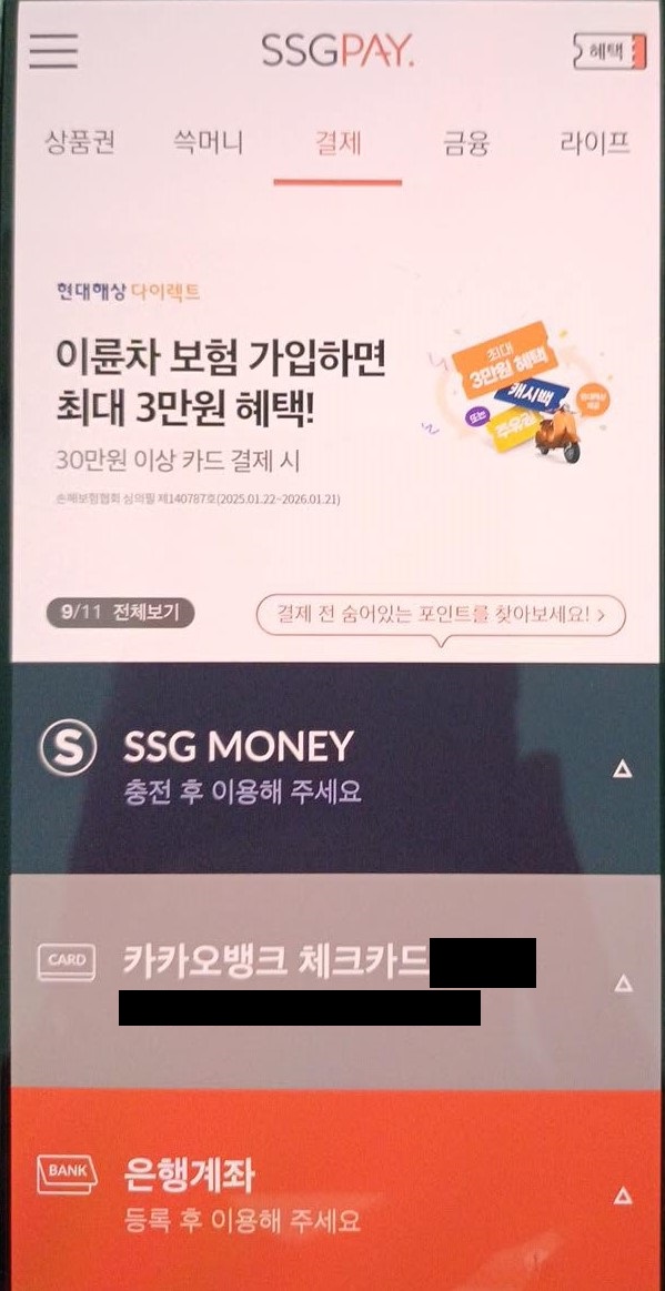 ※ 신세계(SSG)페이 앱은 캡쳐 기능이 막혀 있어 화면을 카메라로 촬영해 화질이 안 좋으니 양해바랍니다.