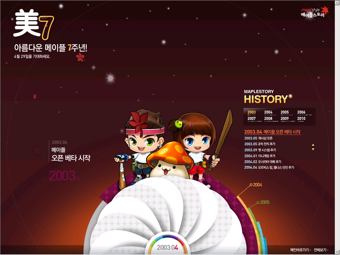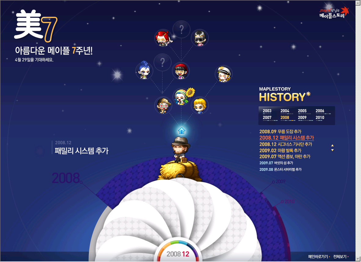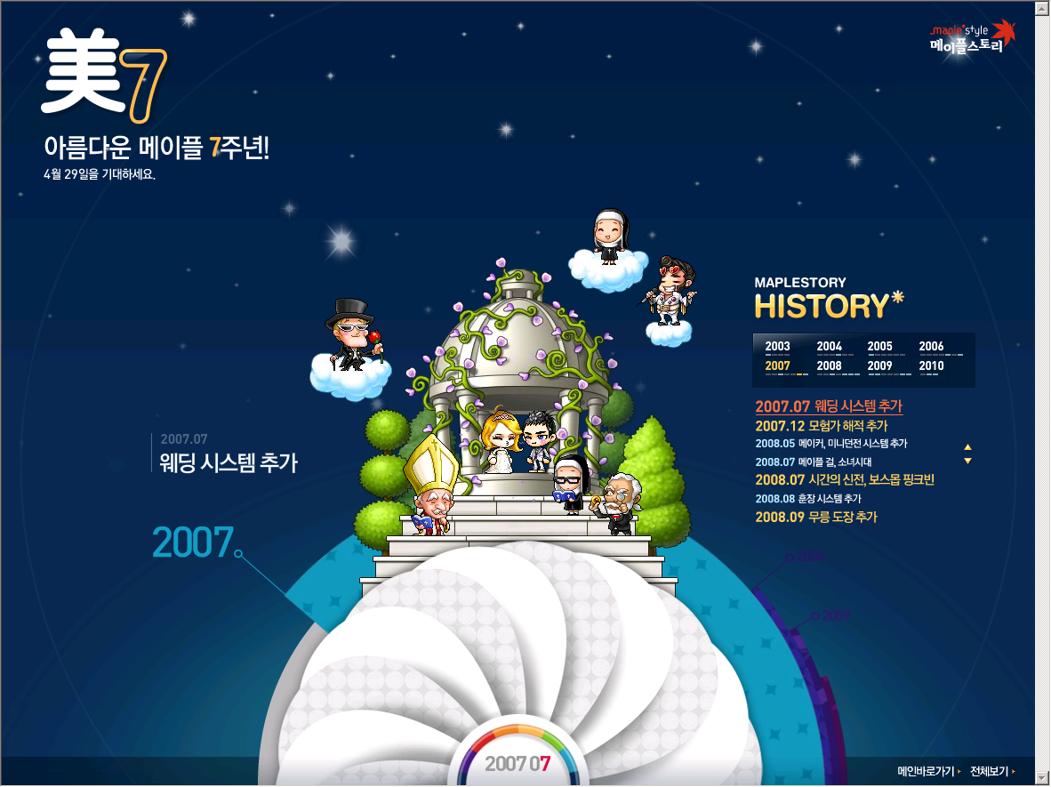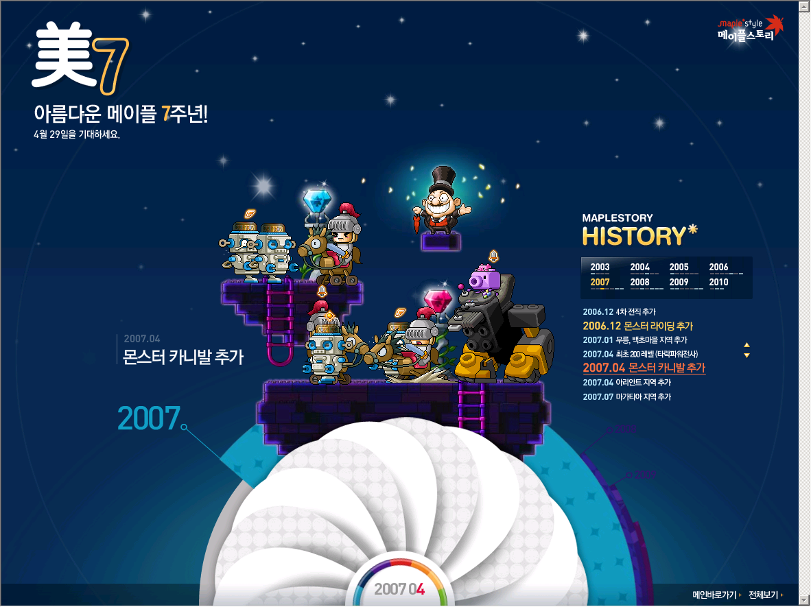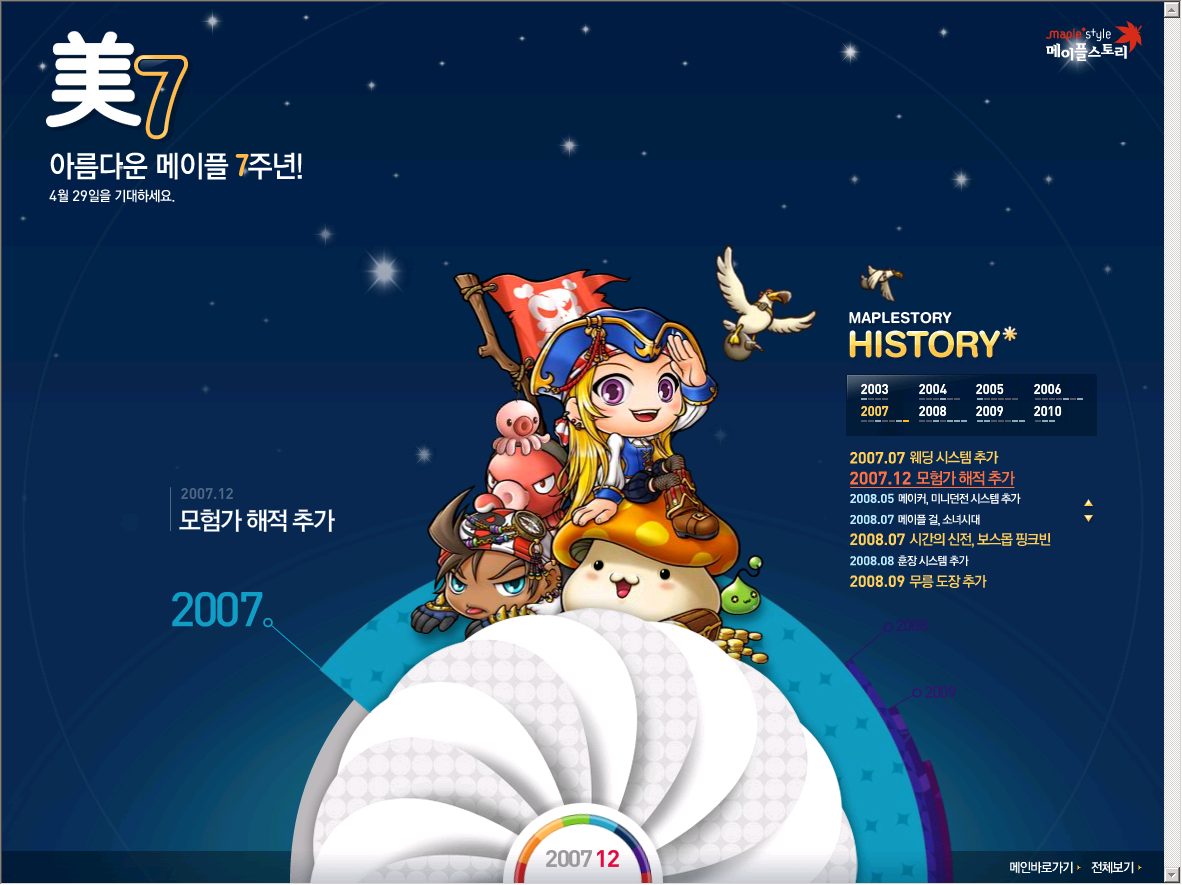 이 내용은 메이플스토리 7주년 기념 페이지의 내용 촬영을 해둔 곳입니다. 그간의 사례로 볼때 메이플스토리는 각종 이벤트페이지의 보존을 하지 않습니다.