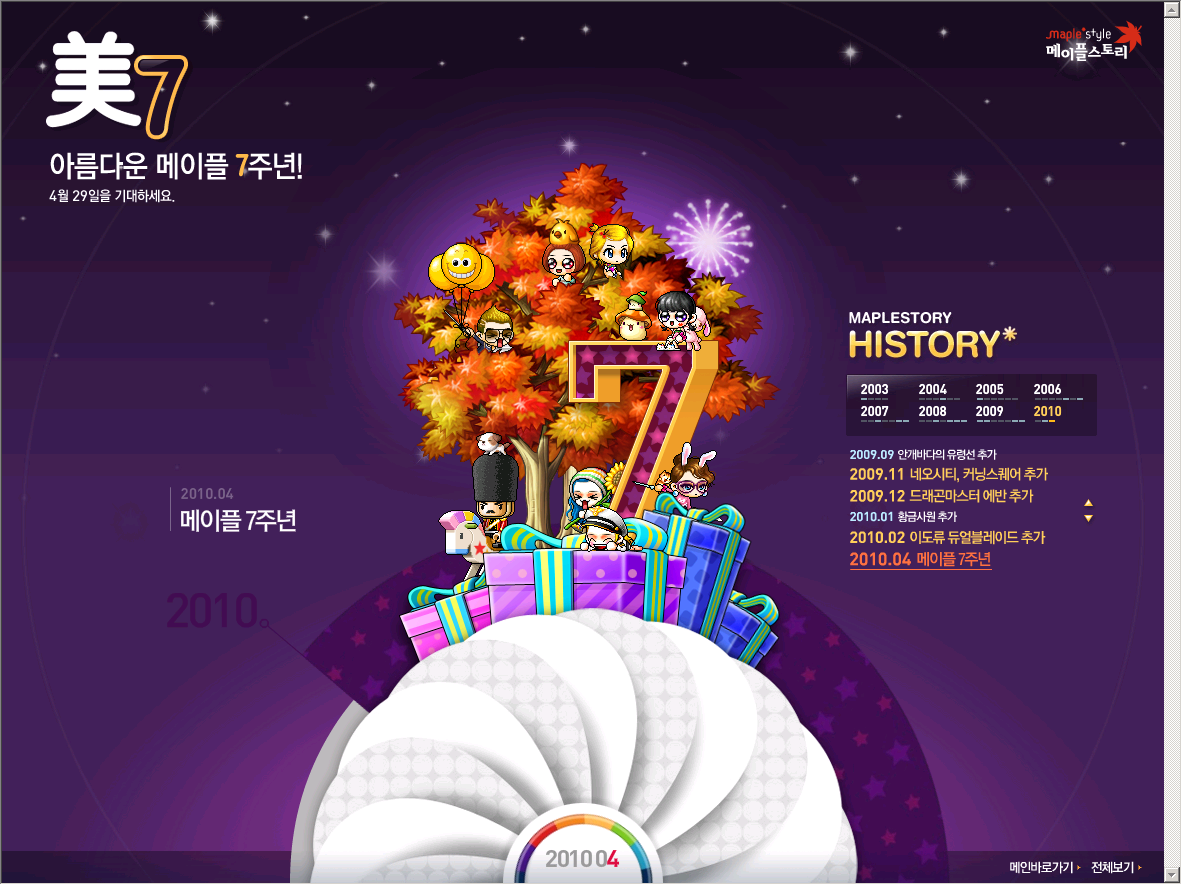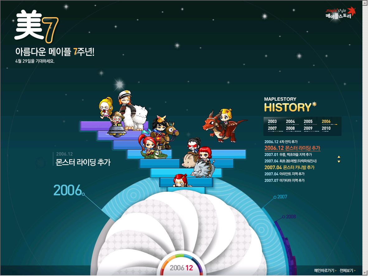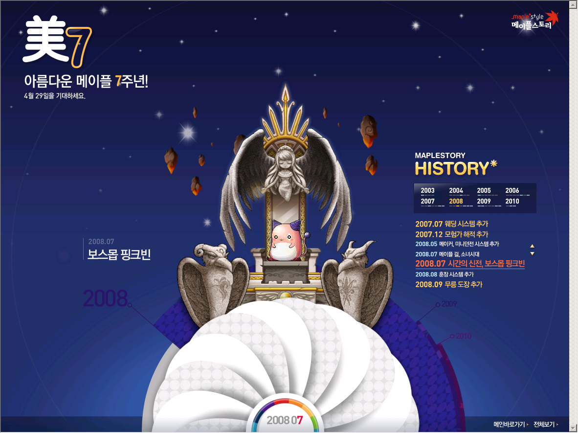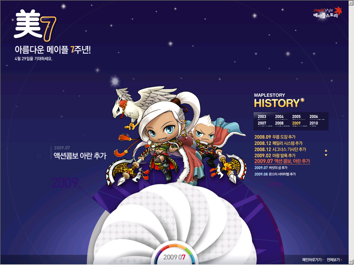이 내용은 메이플스토리 7주년 기념 페이지의 내용 촬영을 해둔 곳입니다. 그간의 사례로 볼때 메이플스토리는 각종 이벤트페이지의 보존을 하지 않습니다.