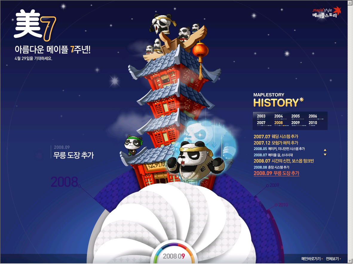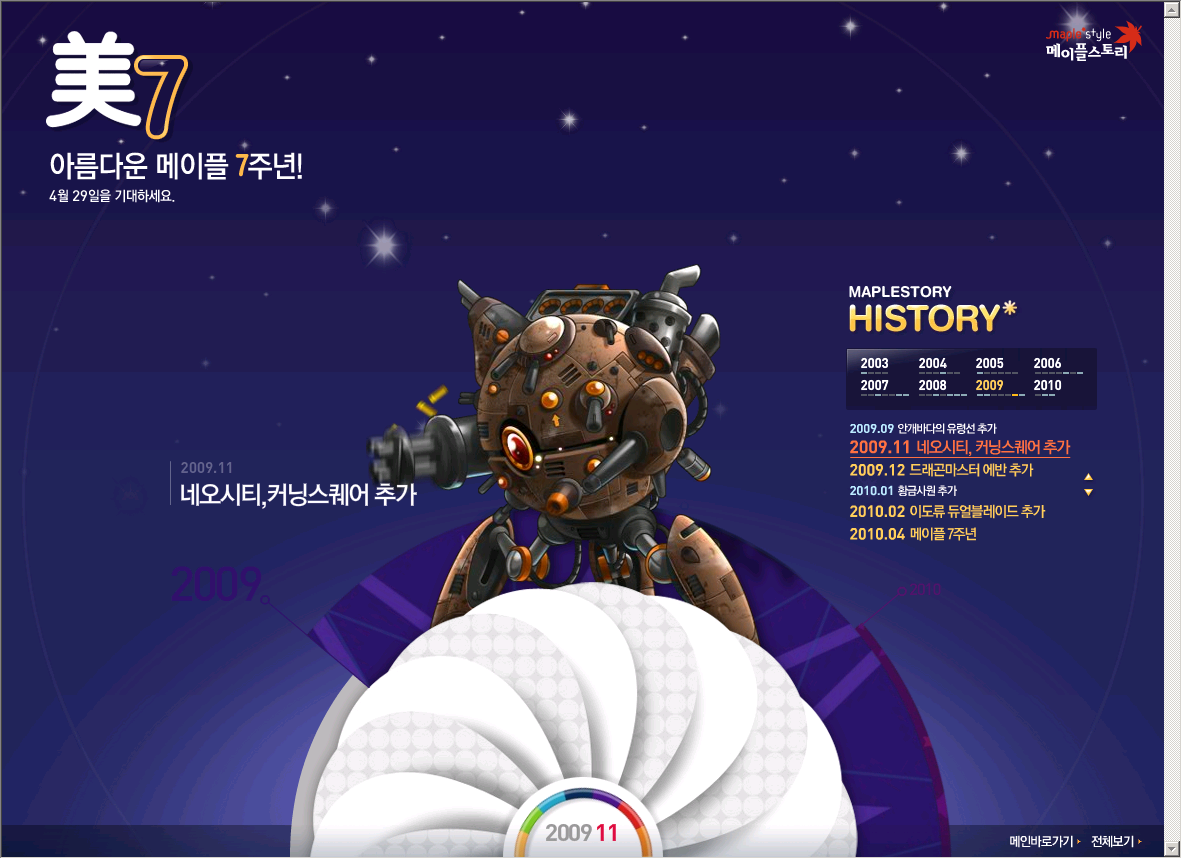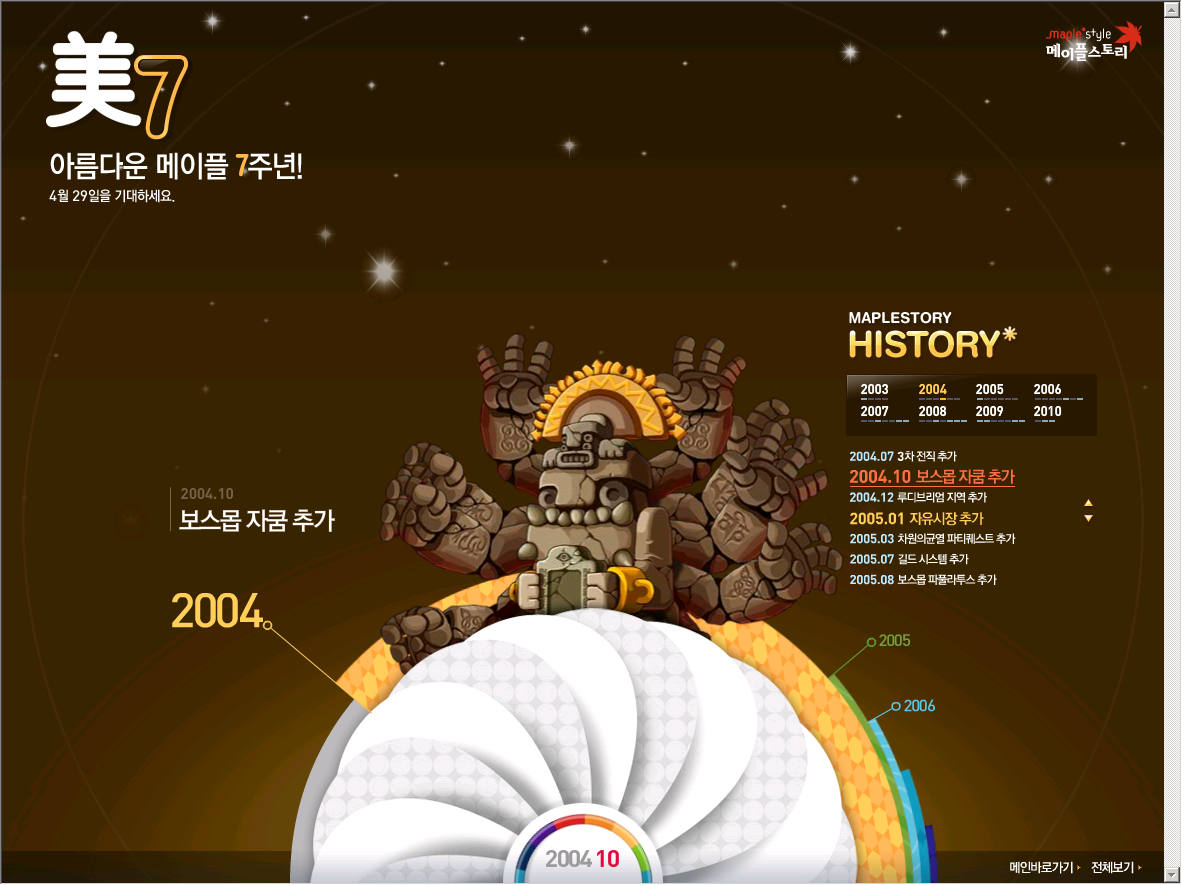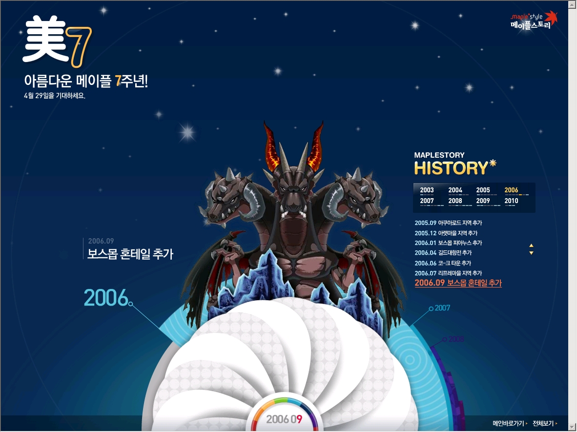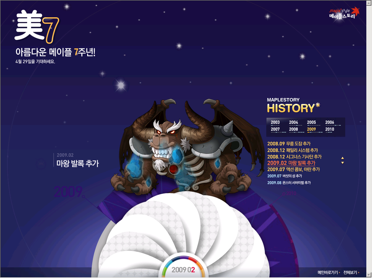 이 내용은 메이플스토리 7주년 기념 페이지의 내용 촬영을 해둔 곳입니다. 그간의 사례로 볼때 메이플스토리는 각종 이벤트페이지의 보존을 하지 않습니다.