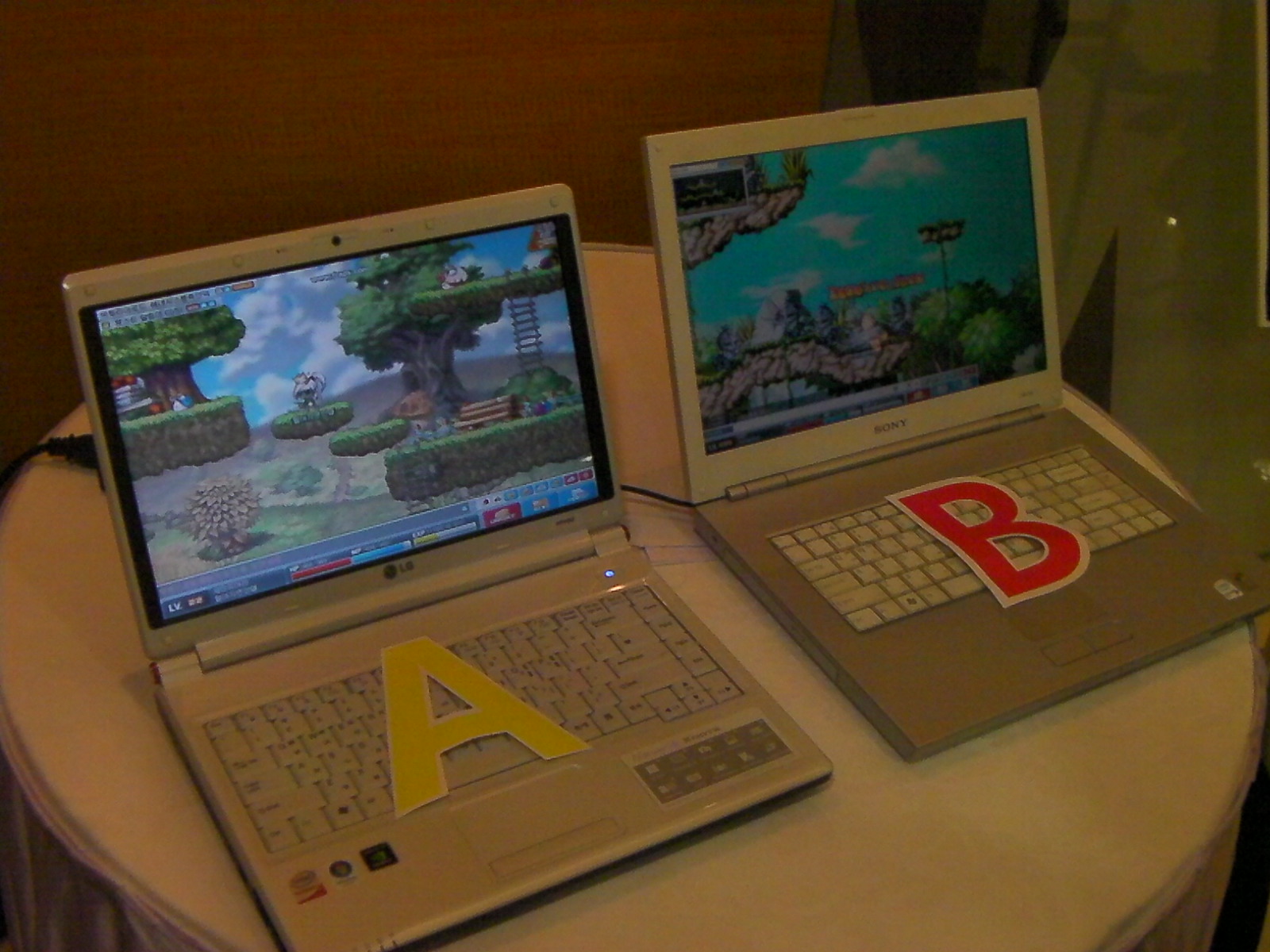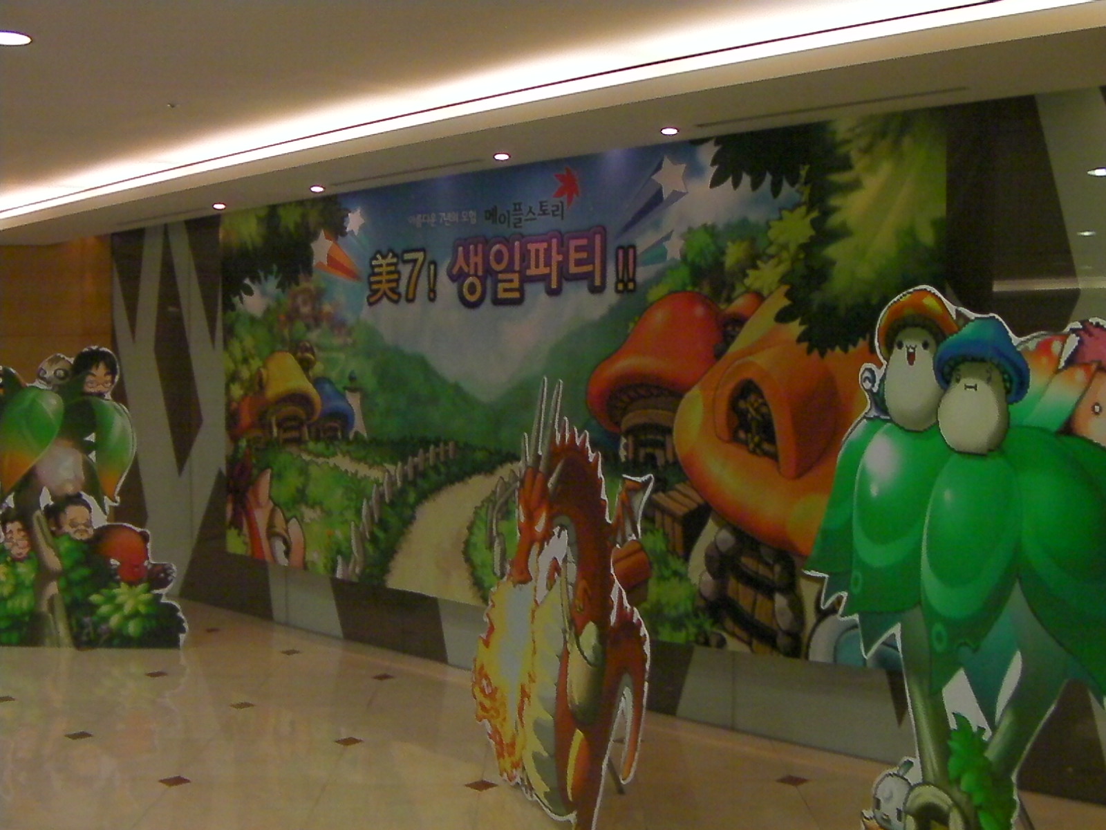 입장하는 길에는 이게 있었습니다. 진짜 플레이가 아니라 녹화영상이구요. 지금 나온 사진은 1024*768 해상도의, 그러니까 좀더 크게 보이는 게임화면입니다. 개발중인 화면이라 아래쪽 막대 부분의 오른쪽이 비어 있지만 이건 개발이 끝나면 사라질 거라고 하니 안심하시길. 덤으로 듣기로는 창모드가 드디어 개발을 하고 있다고 하니 이 글을 보시면 부디 넥슨에게 시덥잖은 캐시말고 창모드나 개발해라 - 라고 압박 넣어주시길. 남보원에서 구호 외치듯이 하면 효과가 더 좋을 겁니다.