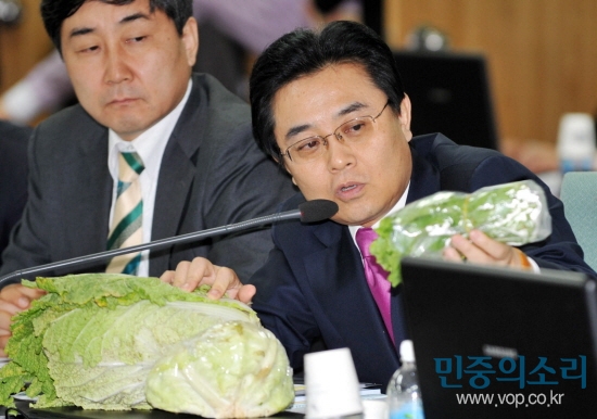 - 전병헌의원(민) : 대통령이 양배추 김치를 먹겠다고 했는데 배추 한 포기 분량 김치를 만들려면 양배추 2~3통이 필요하기 때문에 양배추가 배추 대용식품이 될 수 없다. 이명박 대통령이 집중관리 대상으로 지정한 52개 생필품 가운데 48개 품목의 가격이 올랐으며, 상승폭은 소비자물가지수의 2.5배에 달한다.