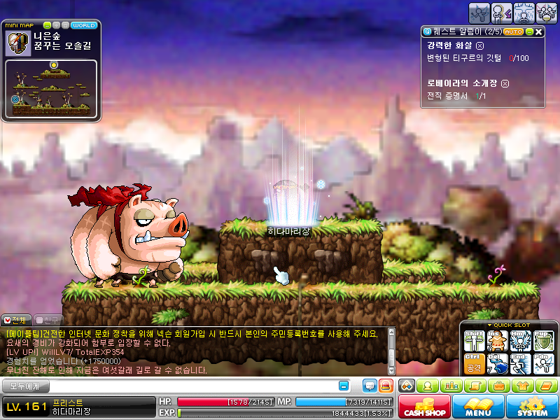 장비도 없고 돈도 없으니 열라 빡세네염 뿌잉뿌잉. 다른 곳 사냥하면서 돈부터 모아야 하는건가(…)