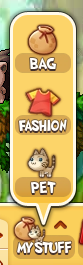 Bag, Fashion, and Pet windows can all be accessed through the new My Stuff menu.