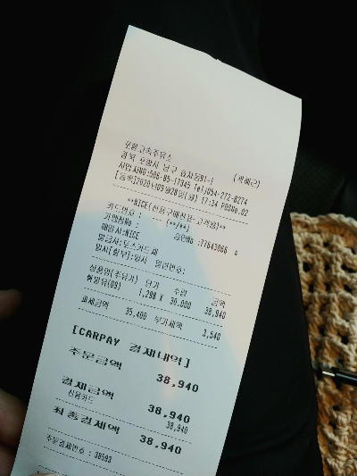 결제가 끝나면 일반적인 결제처럼 영수증이 나오고 CARPAY라고 결제라고 표시.