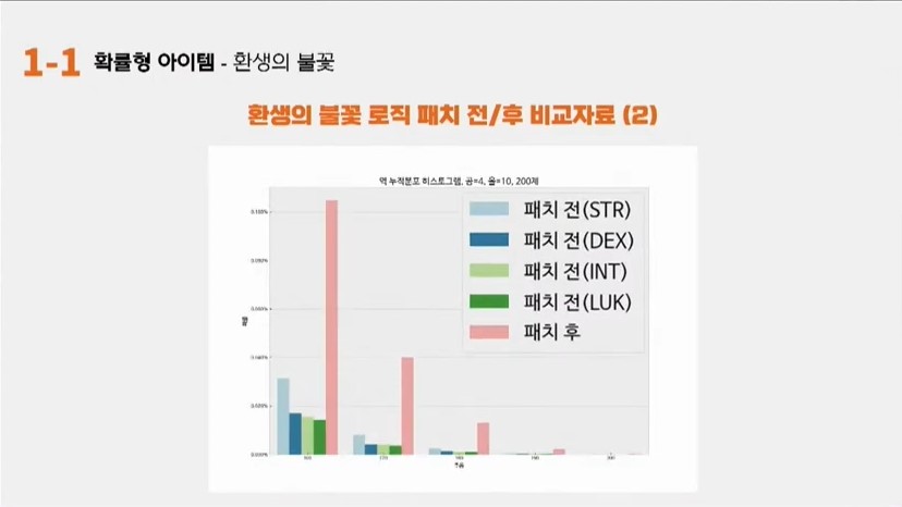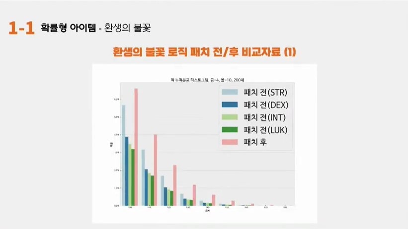 성승헌: 환생의 불꽃 로직패치 전후에 대한 비교자료를 주시면서 여기에 대한 문의점을 제기해주셨는데요. 다른 어떤분이 관련 내용을 추가로 건의해주실까요?