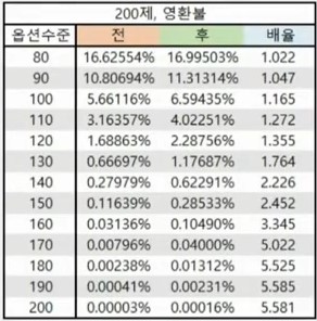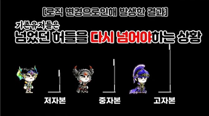 루델팡: 천장이 앞으로 맞추실 분들이랑 격차가 벌어질 것을 우려하셨다고 하셨는데요. 어차피 지금 로직 업데이트 이후에는, 제 생각으로는 확률이 그만큼 올라갔기 때문에 결국은 똑같다고 생각하거든요. 보정을 해줘도 그런 격차가 벌어지는 우려는 생기지 않을거라 생각이 드는데요. 일단은 답변 너무 감사드리구요. 추가옵션 옮기는 방안을 자세하게 검토해서 해주셨으면 좋겠습니다. 감사합니다.