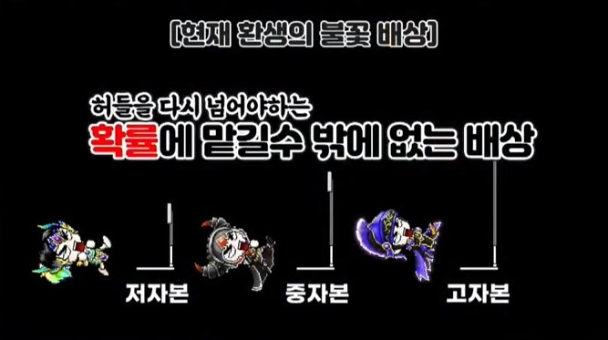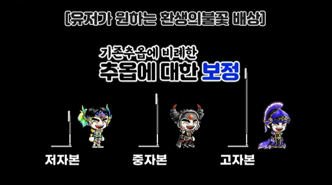 그래서 좀 질문을 드리고 싶습니다. 전체 유저에게 지급된 약 225만개의 환생의 불꽃을 사용한다면 높은 수치의 추가옵션을 가진 아이템이 기존보다 많아질 것입니다. 그러나 개인이 받은 수백, 수천개의 환생의 불꽃만으로는 이미 착용한 교환불가 아이템에 기존보다 높은 추가옵션을 붙인다는게 불가능한 유저들이 되게 많습니다. 거기까지는 생각못하신건지 답변이 궁금합니다.