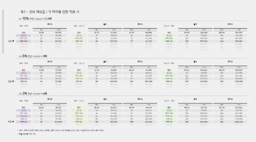 지금 보시는 표는 확률에 의한 사고를 막기 위해 천장을 도입했을 시의 계산입니다. 위부터 차례대로 기대값의 2.5배, 3배, 4배로 적용했습니다. 보시면 우리가 흔히 말하는 기댓값, 즉 평균값은 유의미한 차이를 보이지 않고 있습니다. 따라서 게임 내 경제에 혼동을 줄 가능성도 낮고 천장을 도입하면 오히려 과금에 실패하여 게임을 그만두게 되는 폭사 현상을 방지할 수 있는 메이플스토리에 꼭 필요한 시스템이라고 생각이 듭니다. 이렇게 큐브를 예시로 천장 시스템에 대해서 설명을 드렸는데요. 이것과 비슷하게 성형쿠폰 헤어쿠폰 역시 천장이 필요하다고 생각합니다. 혹시 내부에서 이 천장시스템에 대해서 논의를 진행해보신적 없으십니까?
