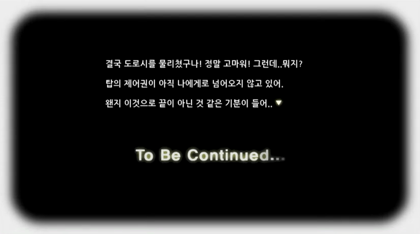 박세웅: 이제라도 아셨으니 진행될 수 있길 바라겠습니다. 이 화면은 더시드 마지막 층인 50층의 도로시를 잡고 나면 출력되는 문구인데요. 이와 같이 To Be Continued 라는 문구가 게임내에서 업데이트된 이후로 지금까지 출력되고 있기 때문에 후속 업데이트의 명분이 충분하다고 생각합니다. 후속 업데이트에 대한 계획이 있습니까?