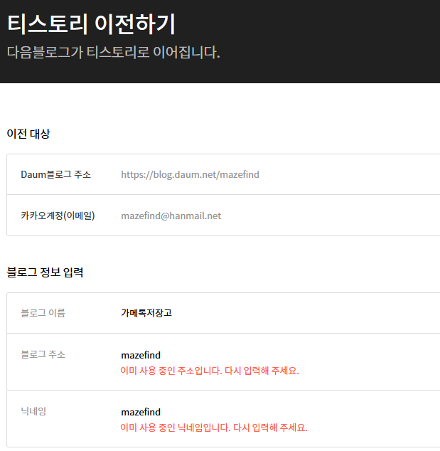 티스토리 이전 관련