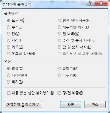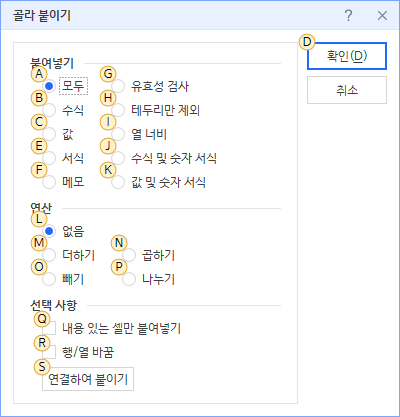 - 엑셀: CTRL+ALT+V → (ALT+)V