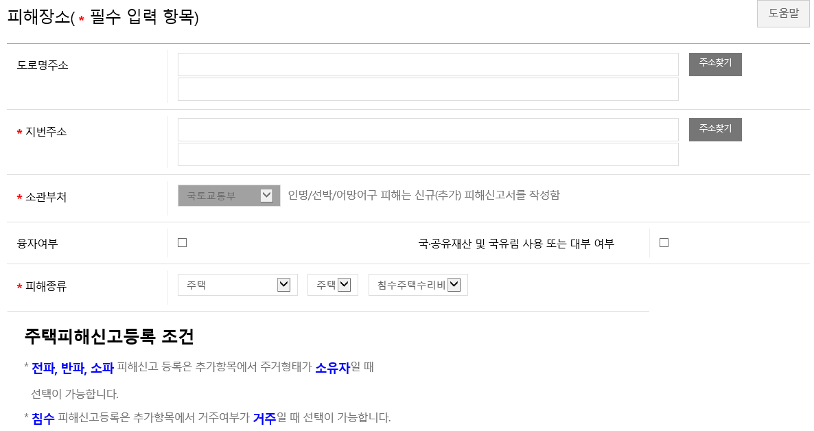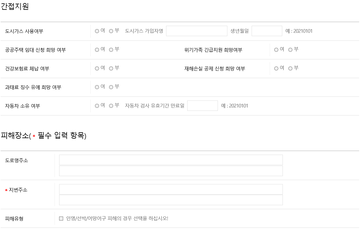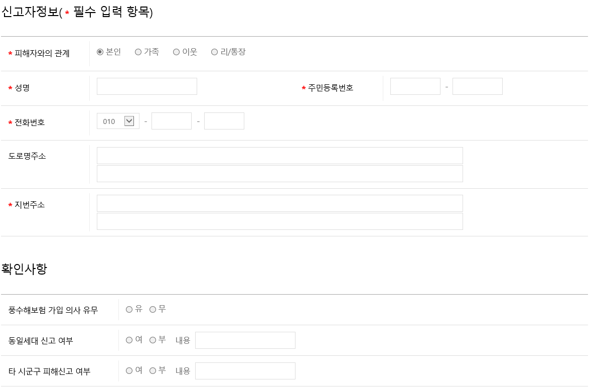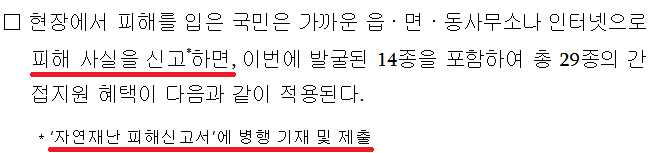 *: 소상공인이나 중소기업의 경우 재난지원금이 나오지 않는 경우가 있다. 하지만 재해기금 신청이나 융자지원을 위해서 재난피해신고를 요구한다.