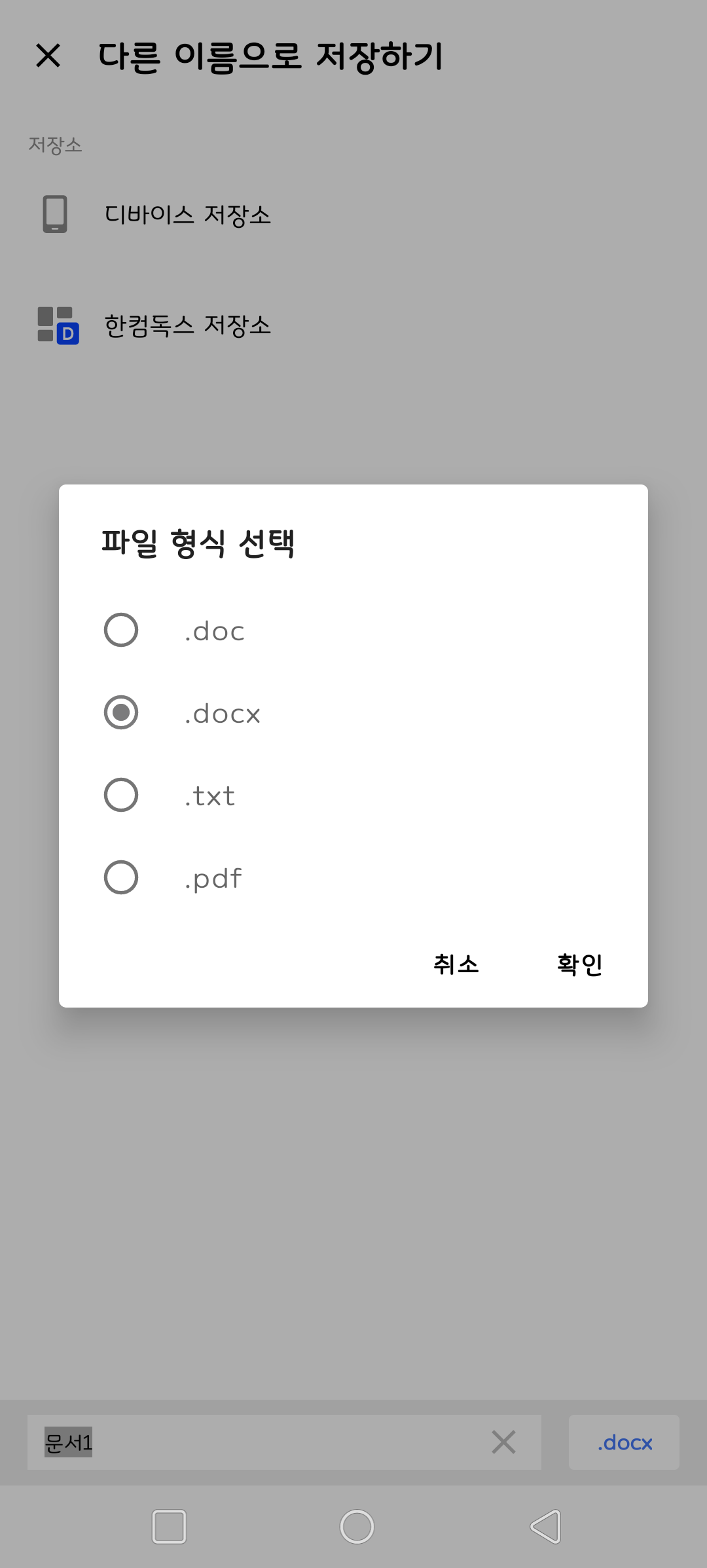 모바일도 한컴스페이스 앱이 더이상 돌아가지 않기 때문에 삭제하고 마켓에서 한컴독스 앱을 다시 설치해야 한다. 특이점이라면 모바일 한워드 실행시 저장 확장자를 (doc/docx/txt/pdf) 확장자 중 선택할 수 있다는 점 정도. 그리고 일종의 미구현으로 보이는데, 무료회원의 경우 2GB 용량 중 얼마만큼을 썼는지 확인할 필요가 있는지만 현재(2022.09.29.) 모바일에서만 이를 확인할 수 있고 PC에서는 이를 확인할 수 없어서 약간 아쉽다.