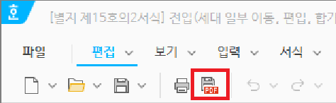 제대로 완료되었다면 서식도구모음에 위와 같이 'PDF로 저장하기' 버튼이 나오게 된다.