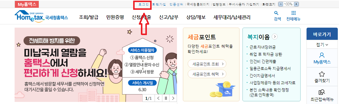 홈택스에 들어간 뒤 로그인. 이 때 로그인은 법인명의의 공인인증서로 해야 한다.