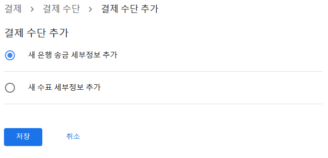 2. 결제수단 추가 화면에서 '새 은행 송금 세부정보 추가'를 클릭한다.