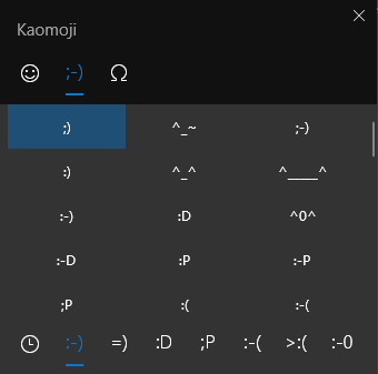 윈도에서는 8.1부터 이모지를 지원했지만 터치키보드를 소환해야 사용할 수 있었고, 윈도 10에서는 2018년 업데이트부터 이모지 입력창을 따로 지원한다. 모바일처럼 따로 이모지 버튼이 있는 건 아니고 단축키를 써야 하는데 해당 단축키는 Win키 + 마침표(.).