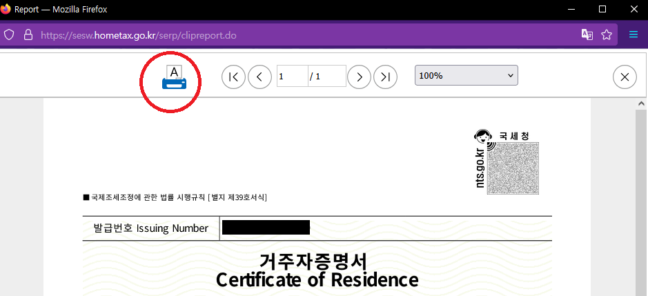 - 거주자임을 증명받고자 하는 연도: 해당 서류를 제출하는 연도를 입력한다.
