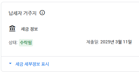 모든 작업이 완료되면 세금 정보를 검토 중이라는 메시지가 뜨며 최장 7일정도가 소요된다.