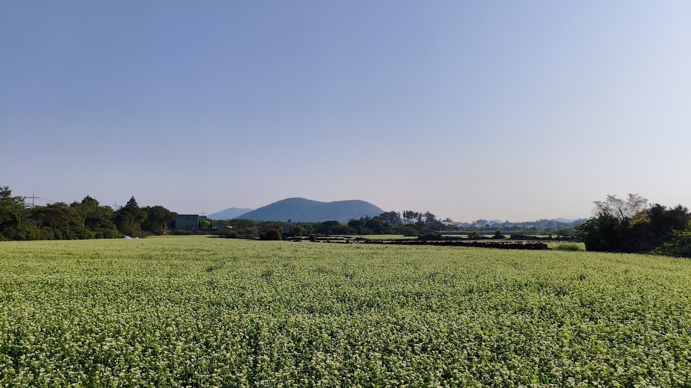 그리고는 숙소로 오는 중인데 중간에 메밀꽃 광경이 너무 개쩌는 곳이 있어서 가다가 즉흥적으로 차를 세우고 풍경사진(과 셀카)을 엄청나게 찍었다. 나는 예전에 제주도 신혼여행 왔을 때도 한라산 넘어오다가 이런 곳을 찍었었는데, 또 우연찮게 이런 곳을 발견했다.